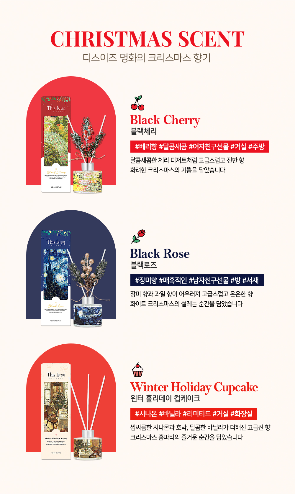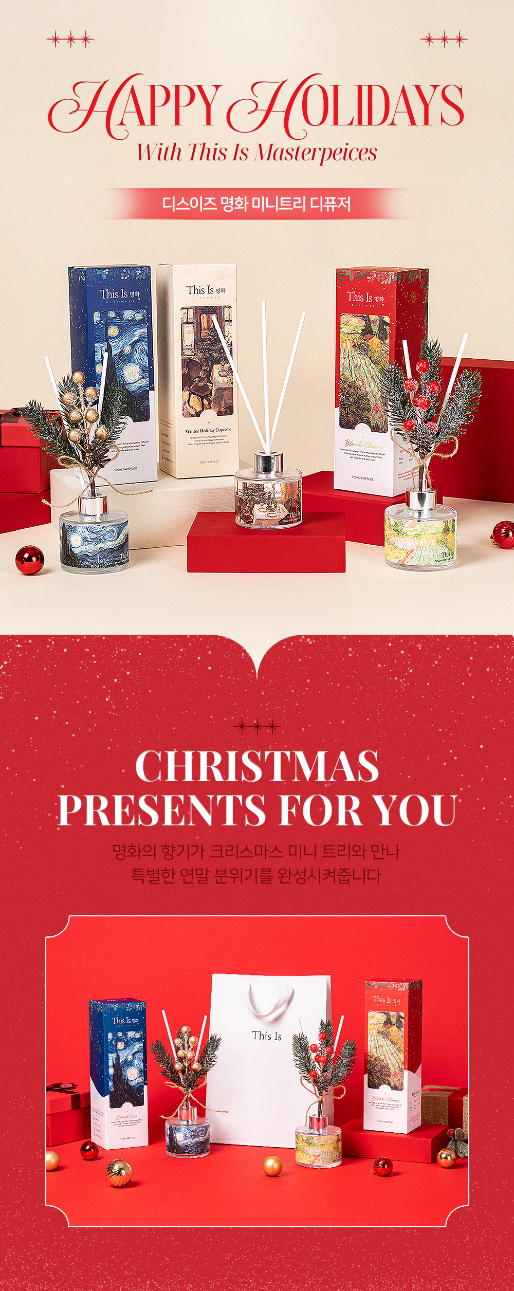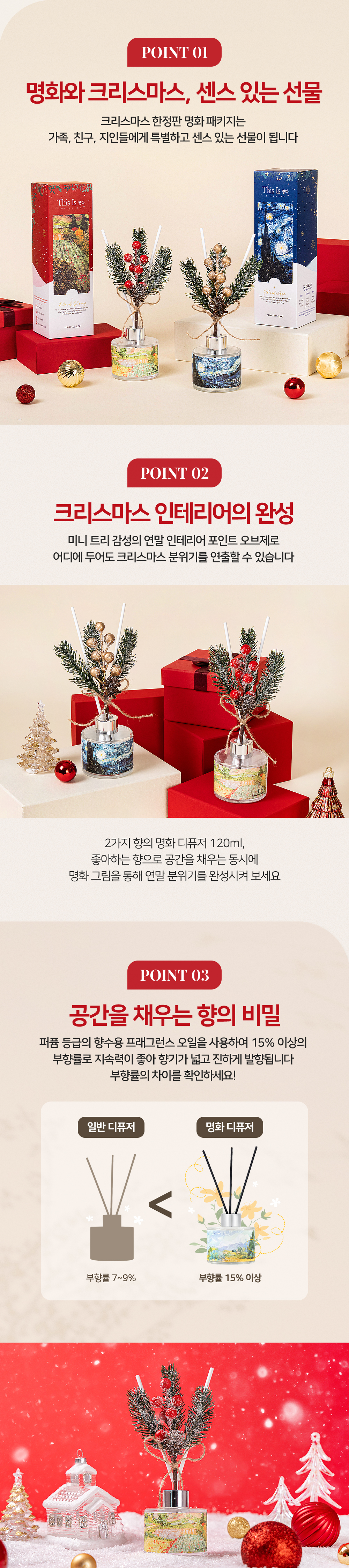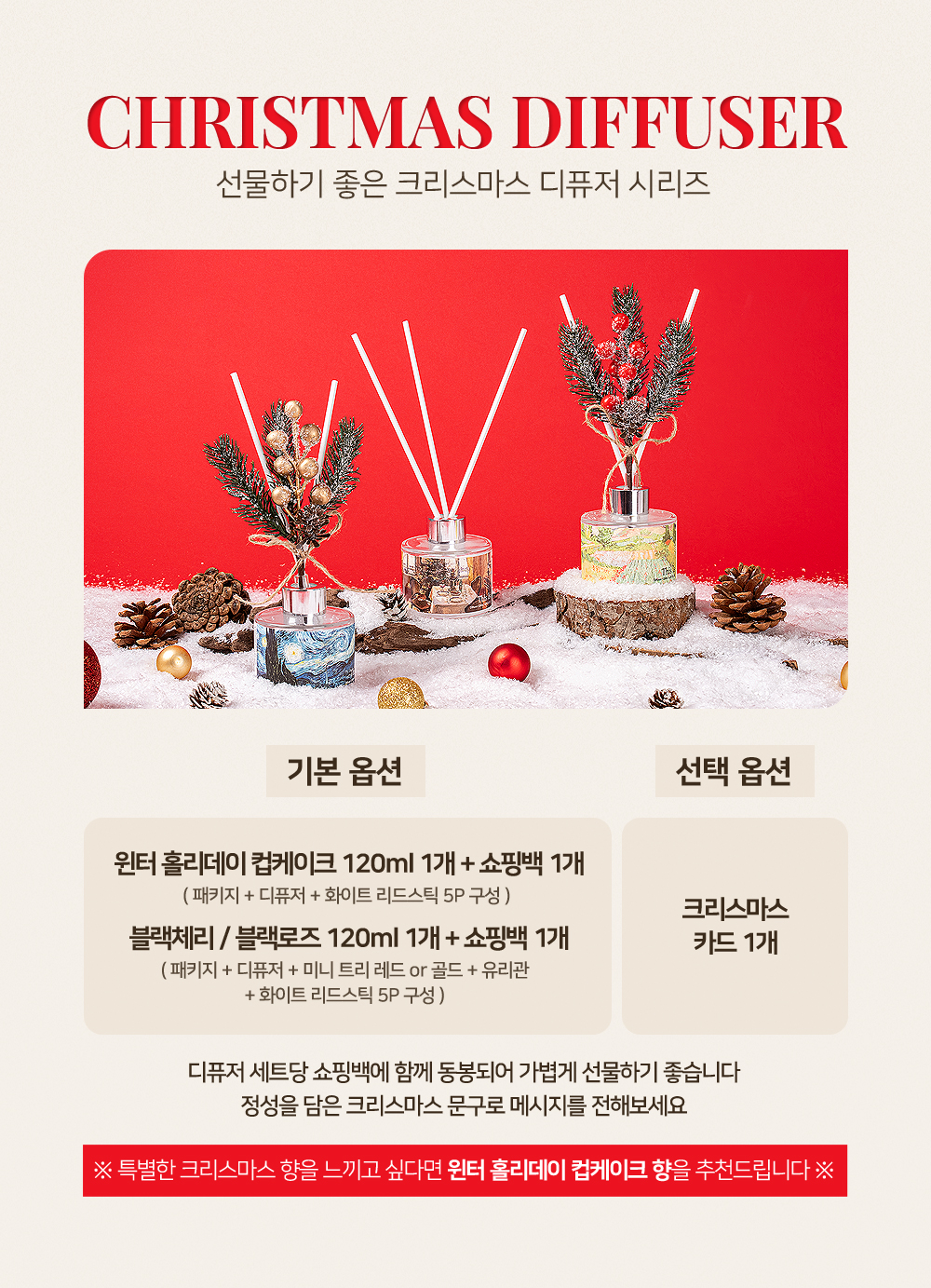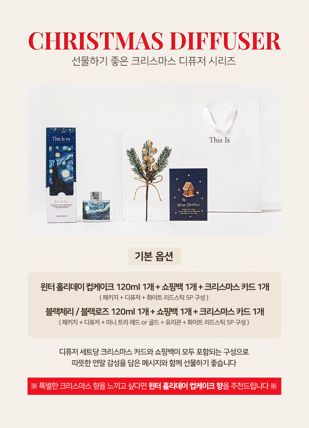 • [디스이즈명화] 크리스마스 미니 트리 디퓨저 120ml 세트 (쇼핑백1 , 크리스마스카드1 증정)